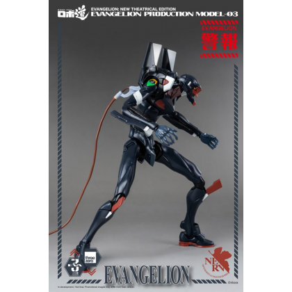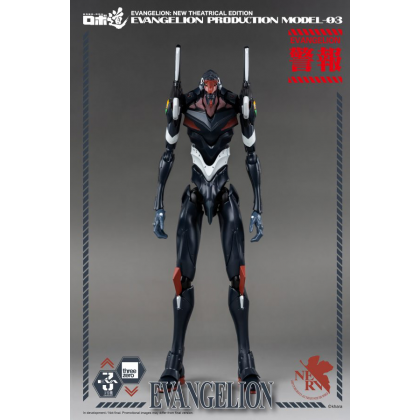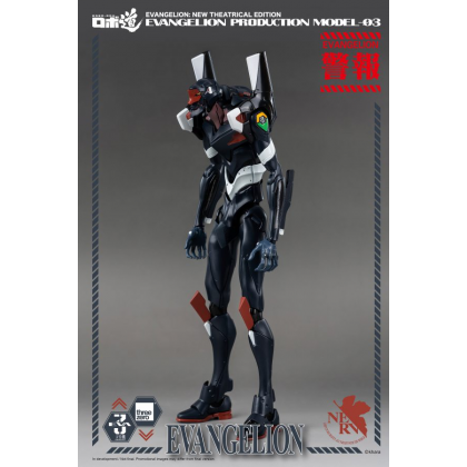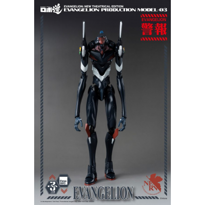 From the anime films “Evangelion: New Theatrical Edition,” threezero is excited to present the next collectible figure ROBO-DOU Evangelion Production Model-03!! This non-scale articulated figure stands approximately 25cm (9.8”) tall with a remarkable die-cast main frame that provides 48 points of articulation. The figure is constructed of ABS, PVC, POM, and zinc alloy. threezero’s renown paint application techniques are utilized to highlight all the details.