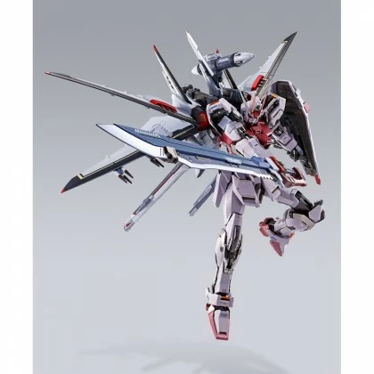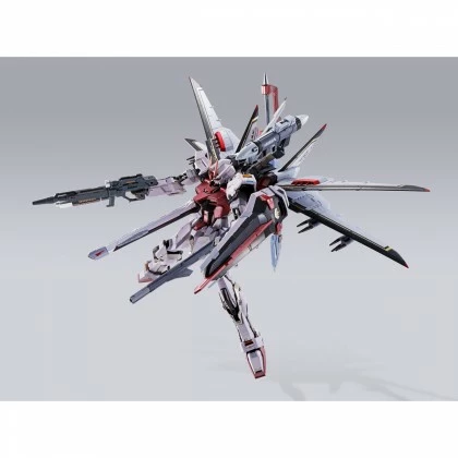 The Ootori Striker is equipped with a beam launcher, railgun and missile launcher, and additionally, a large anti-ship sword with an entity sword blade unique to Metal Build series. Also, each area is movable including the main wing part.